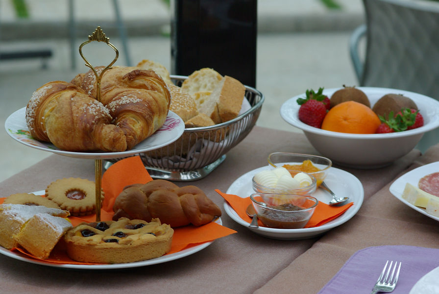 Choose among scrumptious homemade pastries and jams, fresh fruit with yogurt, cereals, cheeses and cold cuts.